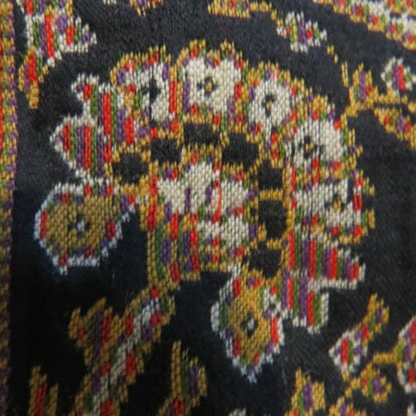 No es el más lucido de los que tengo, pero como suelen llevar muchos tonos en rojos, naranjas, granates, no podía usar los que tienen más dibujos pasley porque se mataban con el color del traje.Ya han visto en otras entradas otro mantón de pasley y la historia de estos mantones.